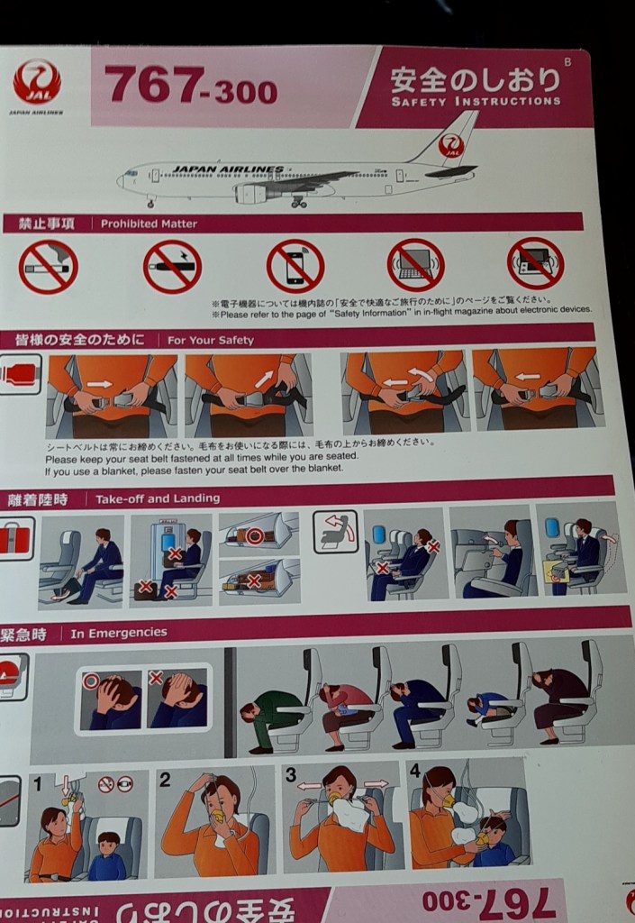 ANA便はB787でした。非常口席なのでCAの方が説明されますが、トラさんの両隣は日本人ではないため英語で説明していました。