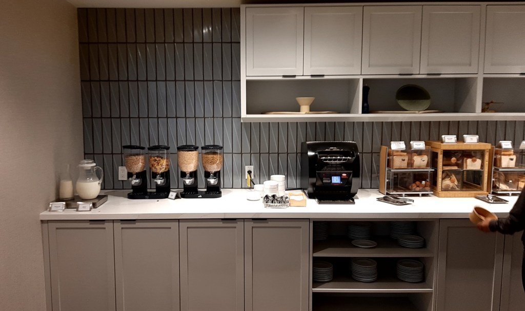 那覇空港のダイヤモンド・プレミアラウンジで朝食を摂ります。クラスJ の空席状況を確認すると、9時発は残1席、11時半発は満席です。