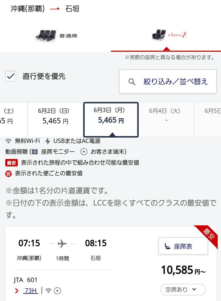 石垣空港を9時発なので6時から受付されるはずです。もたもたしていると昨夜確認したクラスJの残1席が取られてしまいます。