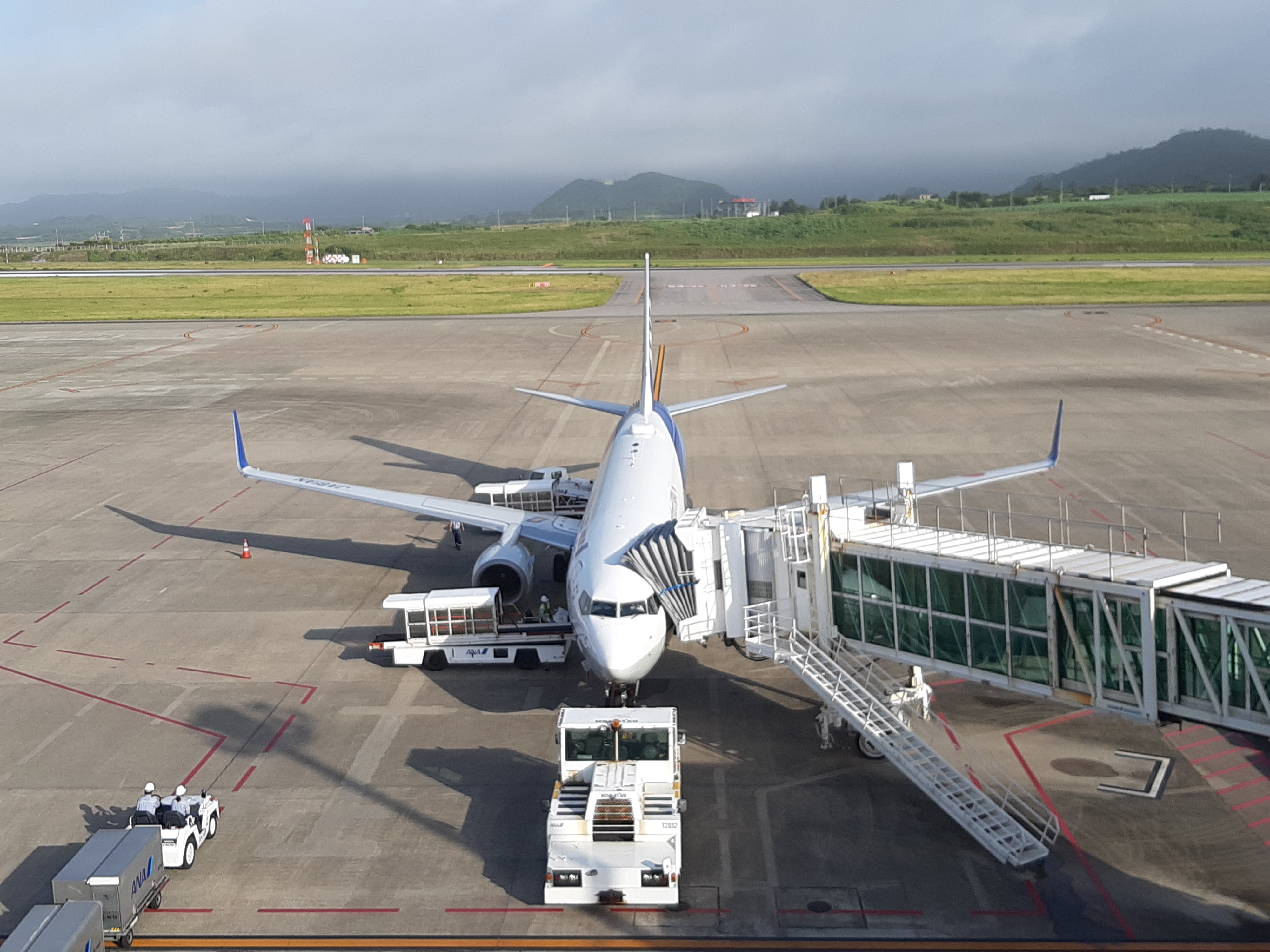 7番ゲートにはさくらジンベエがいました。特別なデザインの機体に乗れるという高揚感が湧いてきます。