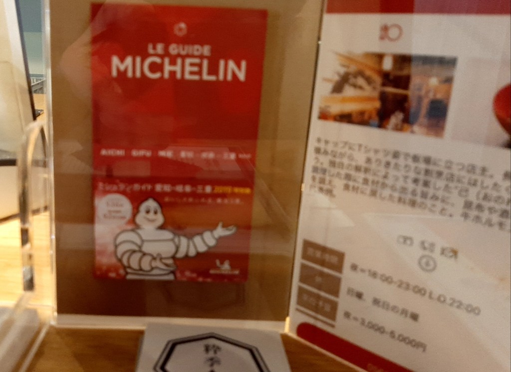 お支払いは地域応援飲食券と現金を併用しました。お支払いの場所にはミシュランガイド掲載店の証がありました。