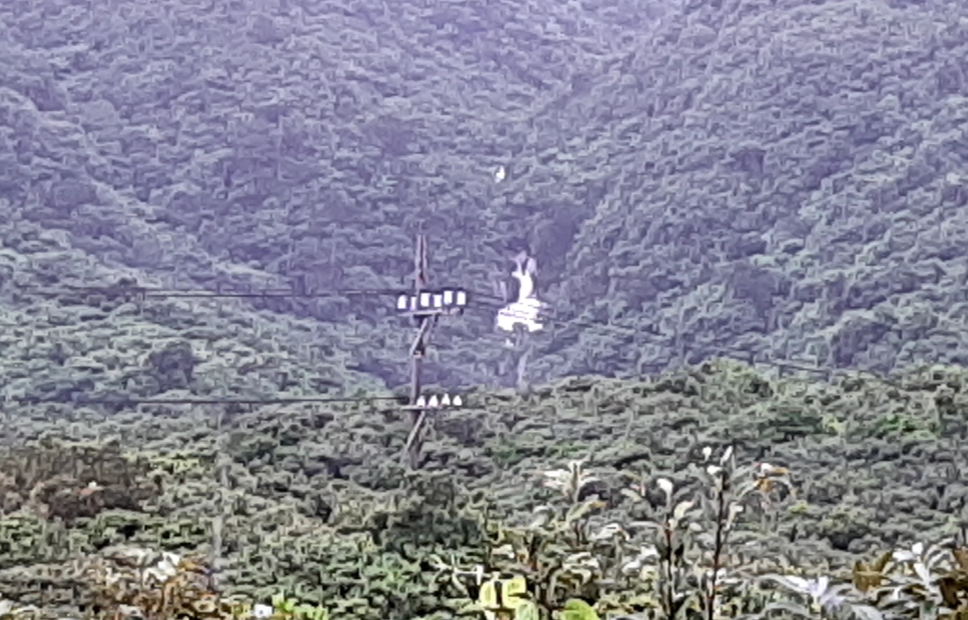 次は「カトレ展望台」に行きましたが、ここへ行く途中でも野生のクジャクを観ました。展望台からはマングローブ森が見えます。しかし、展望台のベンチは野生動物の糞だらけでとても座れるものではありませんでした。