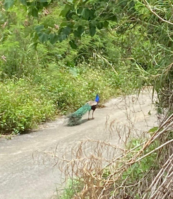 西大岳にも行きたかったのですが、入口がわかりませんでした。途中、野生のくじゃくに遭遇しました。以前に石垣島で野生のくじゃくを見たことがありますが、飼っていたのが逃げて野生化したそうです。小浜島でもそうでしょうか?