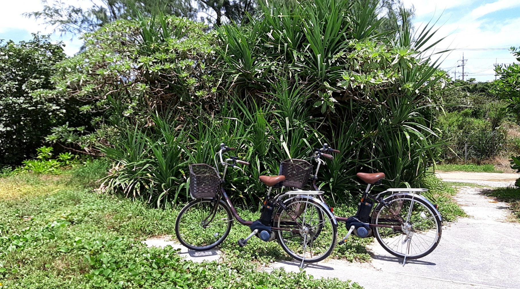 レンタサイクルが2台停められていましたが、アシスト付きでした。小浜島はサイクリングのイメージがありましたが、結構アップダウンがあるので普通の自転車だとかなりきついと思います。アシスト付きで正解です。