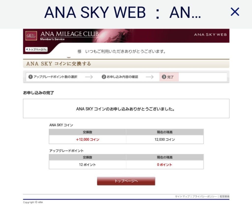 そういえば、トラさんが持っている今月末まで有効のANAアップグレードポイント(UGP)は、今朝ANA SKY コイン12,000円分に交換してしまいました。