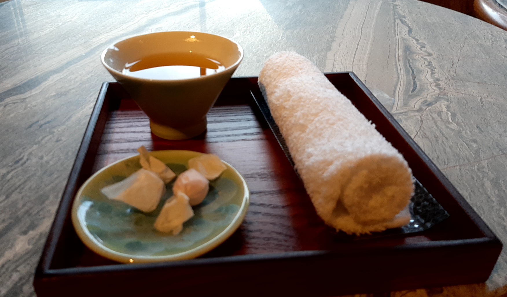 JGC用保安検査場を通り、サクララウンジを目指します。いい香りがします。レセプションはダイヤモンドプレミアラウンジと一緒です。トラさんはサクララウンジを案内されました。